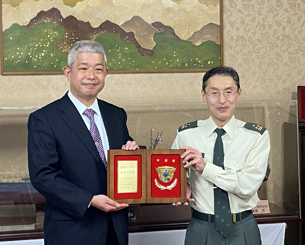 本学は平成30年度に「自衛隊愛知地方協力本部長感謝状」を受領しており、その後も引き続き自衛隊の充実発展に貢献したことが評価されました。