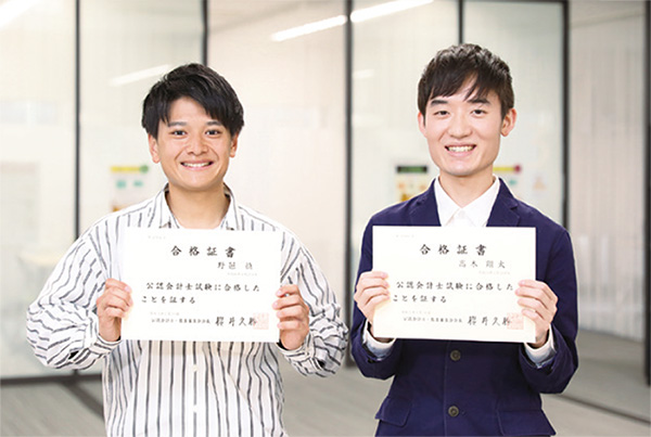 今回合格したのは経営学部会計ファイナンス学科4年生の高木翔太さん、野邑慎さんです。