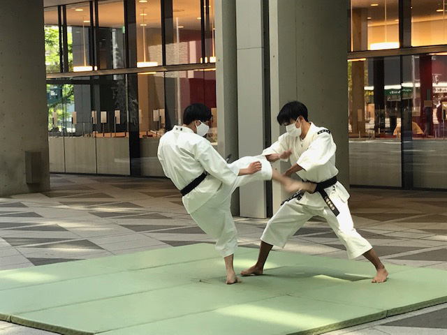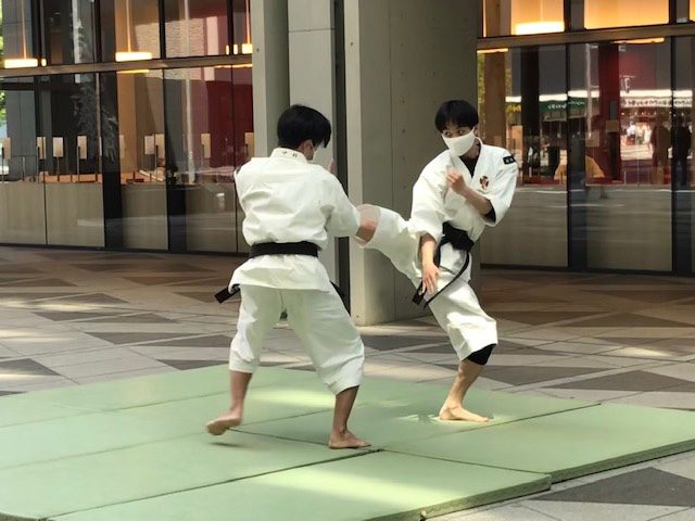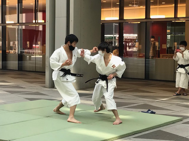大会の競技形式の演武だったため、とても迫力があり、足を止めて見ている学生の姿もありました。