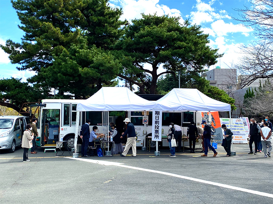 昨年導入された移動投票用バスを利用した期日前投票所には、学生、教職員及び地域のみなさま、合計368名が投票しました。