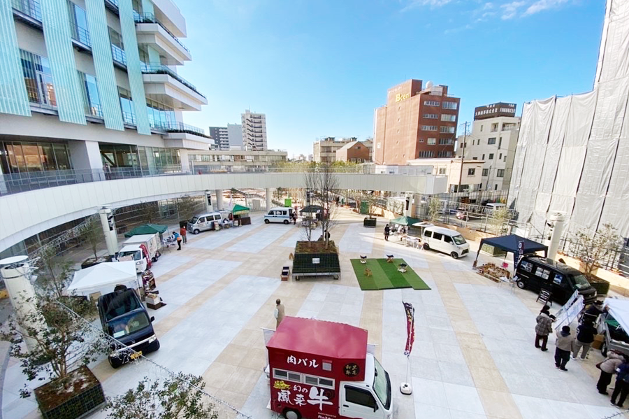 1月8日(土)、豊橋駅前に昨年10月開設された「emCAMPUS まちなか広場」にて、地域政策学部と短期大学部の学生および豊橋市職員有志による協働事業「豊橋まちなか軽トラ市」が開催されました。