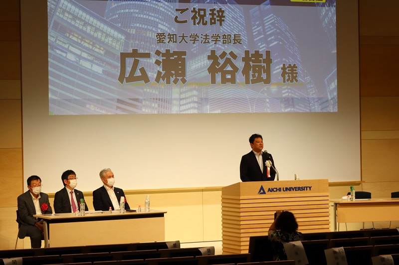 第22回シンポジウムの開会に先立ち、小林元治日本弁護士連合会会長の開会挨拶が行われ開会しました。本学からは、広瀬裕樹法学部長が来賓挨拶を行い、大村秀章愛知県知事、河村たかし名古屋市長からもビデオメッセージが寄せられました。