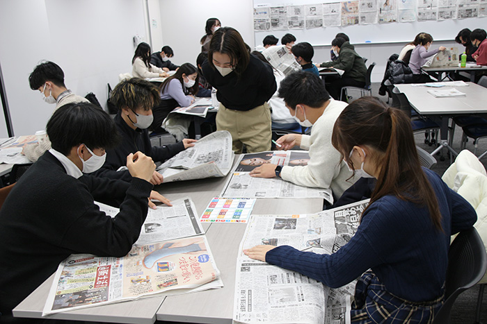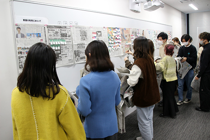 学生たちは、多角的な視点で見ることで、多くの事象がSDGsに繋がっていることを改めて認識でき、新聞紙は、全てのページが付箋で埋め尽くされました。
