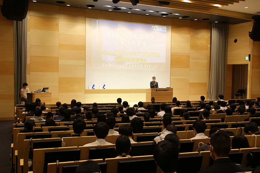 3月13日(月)、愛知大学キャリア支援センターは愛知県立天白高校2年生約360名を名古屋キャンパスにお招きし、高校生によるアントレプレナーシップ・プログラム(起業家育成プログラム)の最終発表を見届けました。
