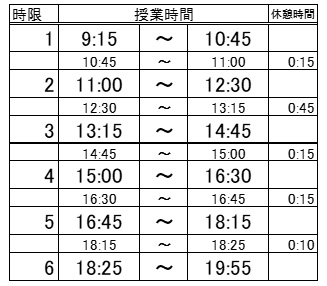 2025年度(2025年4月1日)以降は、次の授業時間帯となります。