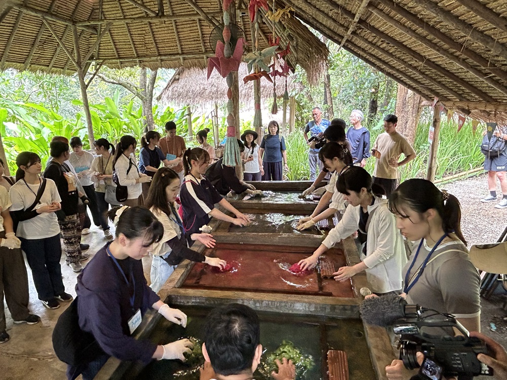 学生たちは2024年8月2日から7日にかけてタイ・チェンマイを訪れ、本学海外提携校であるタイ・ナレースワン大学の学生の協力のもと「カサロンの家」の訪問および「プープーペーパー」の製作を行いました。