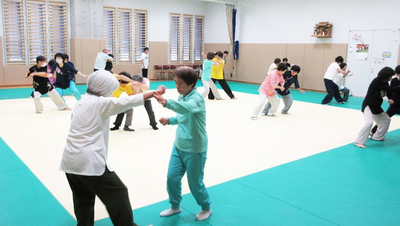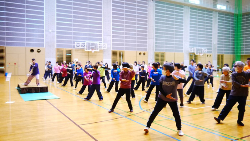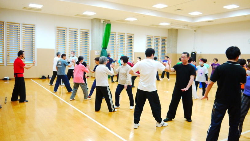 本講座は、中国武術の一流の競技実績と指導歴を有する5名の講師をお招きして毎年開講しており、今年度で35回目になります。「伝統楊式太極拳(増田 尚子 先生)」、「簡化二十四式太極拳(周 偉 先生)」、「祖父母・親子体験型カンフー体操(小野 晃裕 先生)」、「太極対練(張 成兵 先生)」、「太極推手(張 成忠 先生)」の5種目の実技指導を午前と午後に行い、最後に受講者の成果発表を行いました。