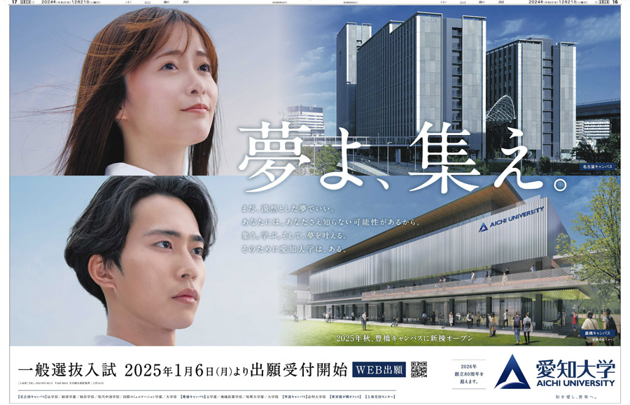 2024年12月21日付の中日新聞16-17頁に全面広告を掲載しました。