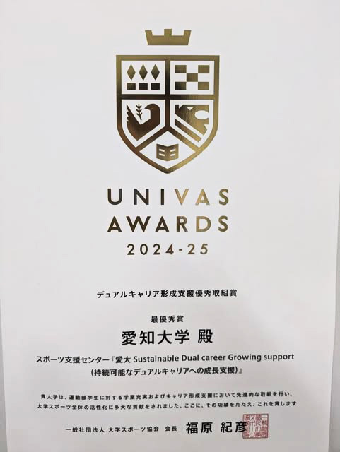 今回の受賞は、愛知大学におけるスポーツ政策が、スポーツのみにとどまらず学業やキャリア形成においても価値を持つことについて、評価をいただけたものと、たいへん嬉しく存じております。