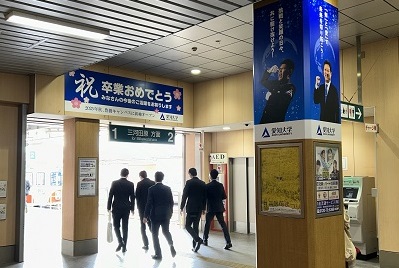 豊橋鉄道渥美線新豊橋駅では卒業を祝し、未来に向かって大きく羽ばたく卒業生への応援看板を設置しました。