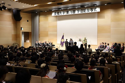 3月24日(月)名古屋キャンパス グローバルコンベンションホール、3月25日(火)アイプラザ豊橋にて、愛知大学第78回・愛知大学短期大学部第65回学位記授与式を挙行しました。