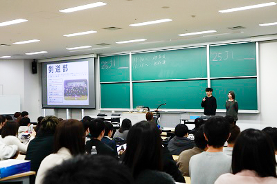 また、クラブ・サークル紹介も教室で行われました。学内は多くの新入生と勧誘に力の入るクラブ・サークルで賑わっています。