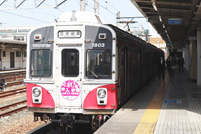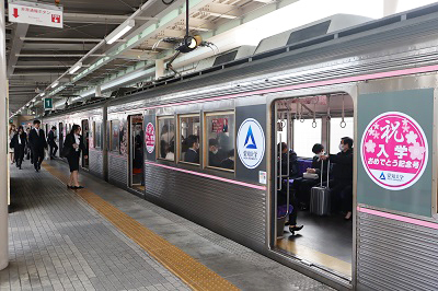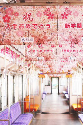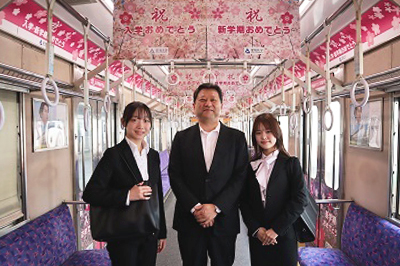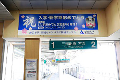 入学式に合わせ、豊橋鉄道株式会社との連携により、「愛知大学 入学おめでとう記念号」を運行して