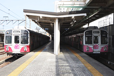 記念号は2編成運行し、新入生、在学生が心躍る気持ちで通学でき、沿線住民や利用客にも楽しんでいた