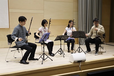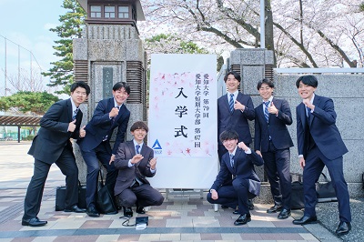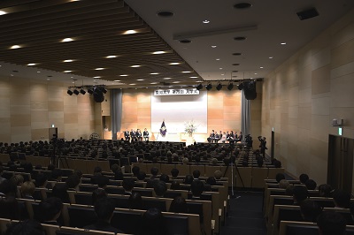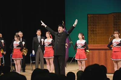 式典の開会前には吹奏楽部(豊橋キャンパス)と二胡部(名古屋キャンパス)による演奏で新入生を迎え、式典中には應援團チアリーディング部の演舞や、應援團リーダー部による学生歌斉唱、新入生へのエールが送られました。