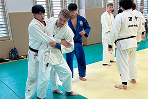 5月15日(木)には学生によるキャンパスツアーと生協で食事しながらの懇談会、5月22日(木)に双方の学生によるプレゼンテーションと柔道部の協力による柔道体験を通じて、日本語や英語を使用するとともに、ボディランゲージを駆使しながら、笑顔で交流していました。