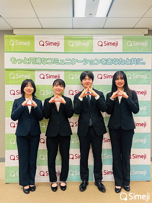今回発表されたのは、愛知大学山田ゼミチームJAWSの学生4名(黒野梨心さん・瀬尾奈々子さん・中川和香さん・福永勝吾さん)とSimejiが共同開発し、新機能としてリリースされた「まぁるく変換」「いろいろ感情」の2機能。