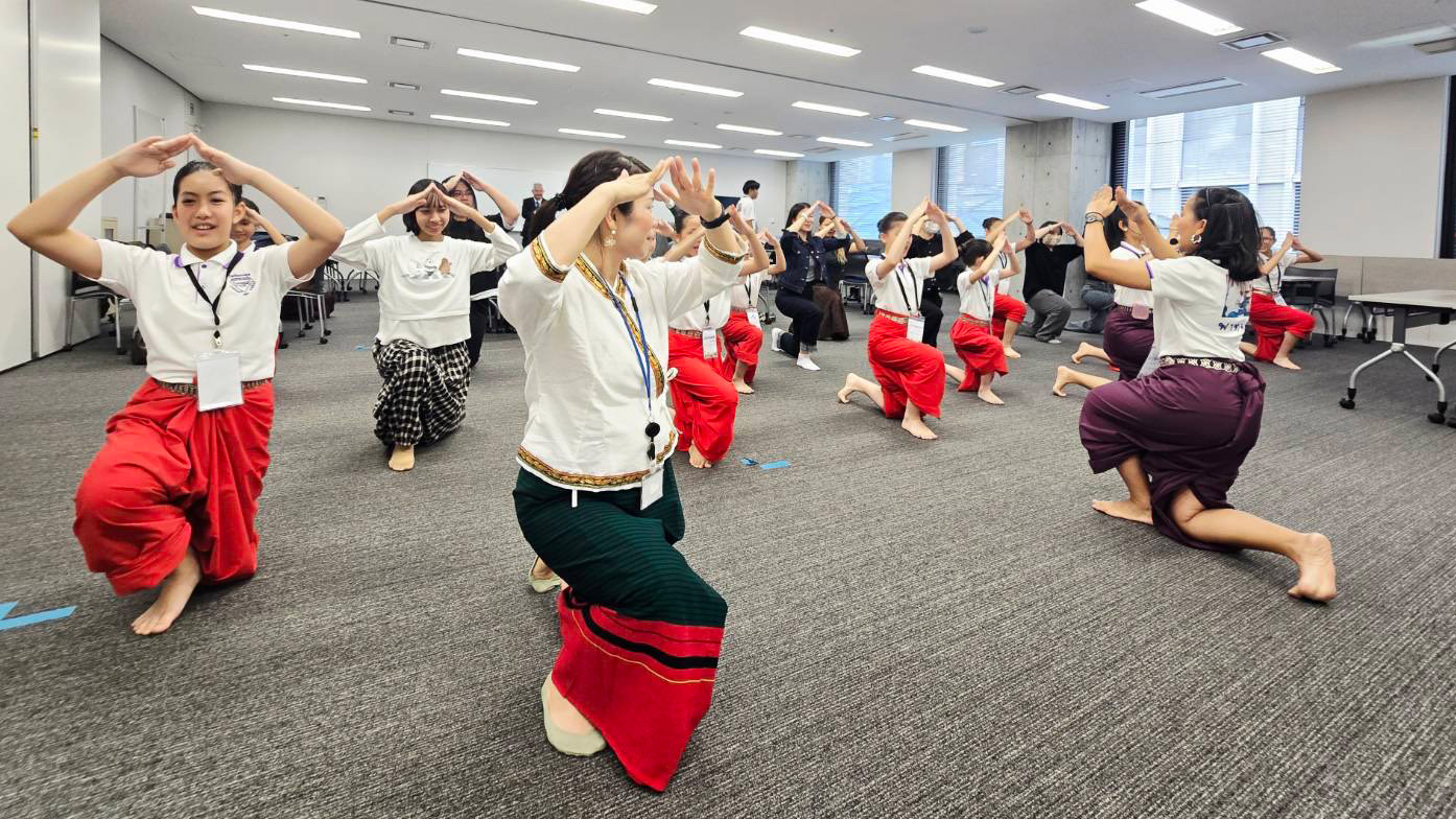 マダポーン先生の指導のもと、タイ人生徒と日本人学生が混合グループを組み、学んだ歌と踊りを披露するセッションも実施され、和やかな雰囲気の中で異文化交流が深まりました。