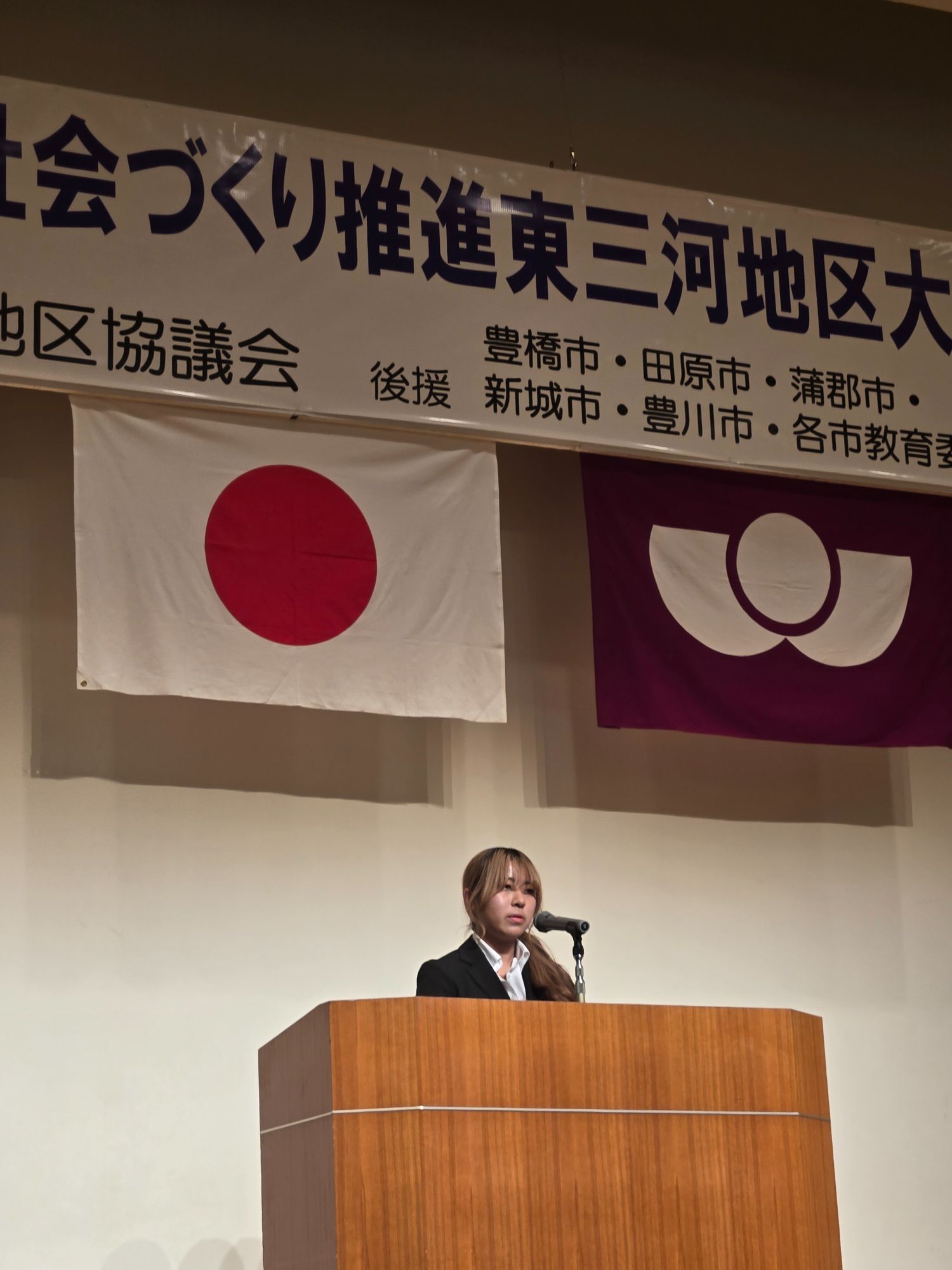 11月23日(日)には、豊橋市内で表彰式と体験文発表が行われ、3名が表彰状を授与され、西浦さんは壇上で体験文の発表を行いました。