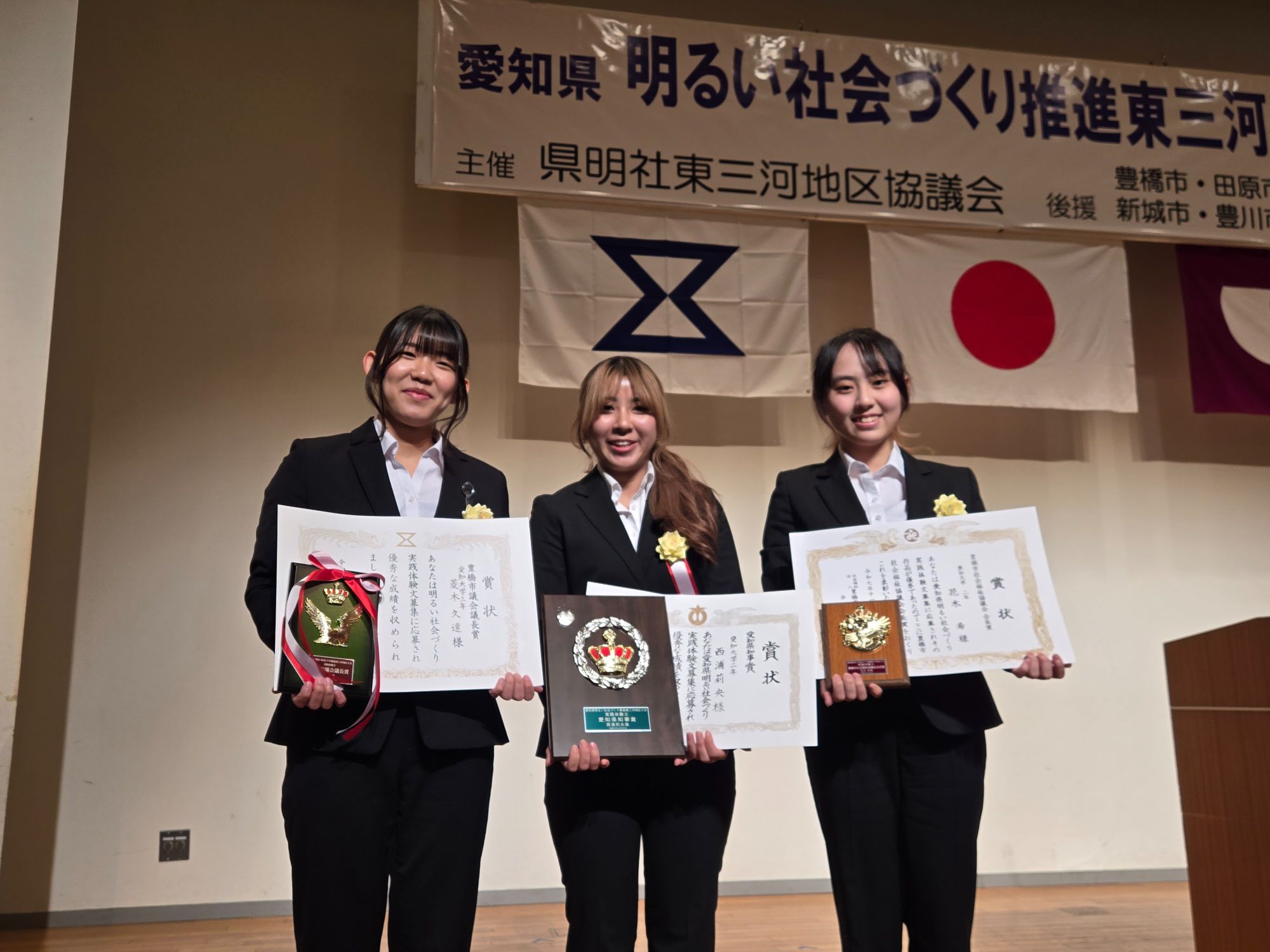 愛知県明るい社会づくり推進東三河地区協議会が主催する「明るい社会づくり実践体験文」コンクールにおいて、本学学生3名が最高賞を含む入賞を果たしました。