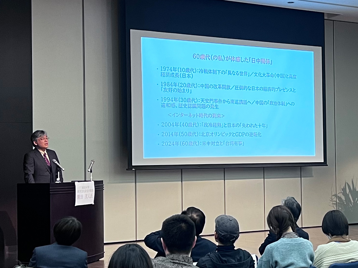 講師として、中国社会研究の第一人者である園田茂人教授(東京大学東洋文化研究所)と、現在中国で最も有名な日本人インフルエンサー(フォロワー数約1000万!)である竹内亮監督(映像作家、株式会社ワノユメ創業者)に御講演をいただきました。