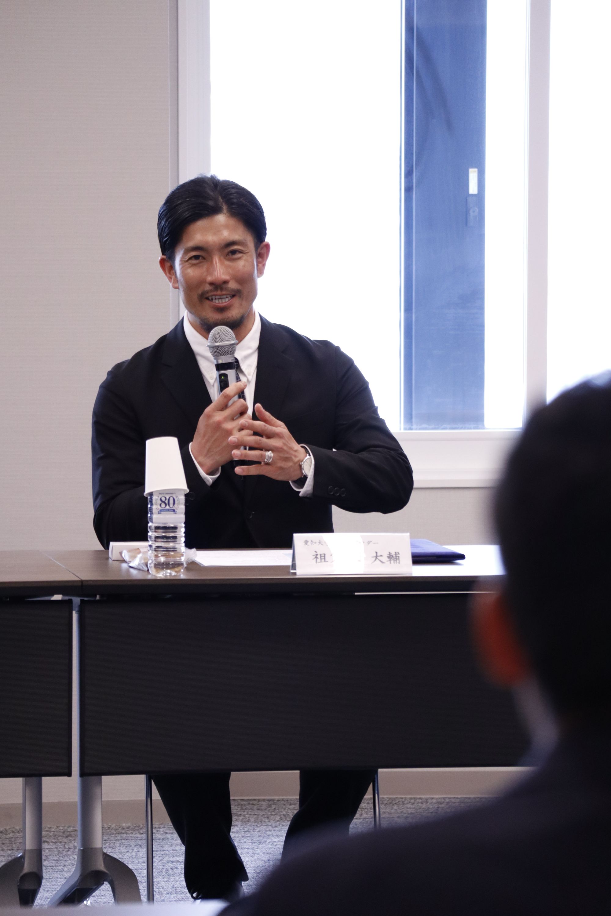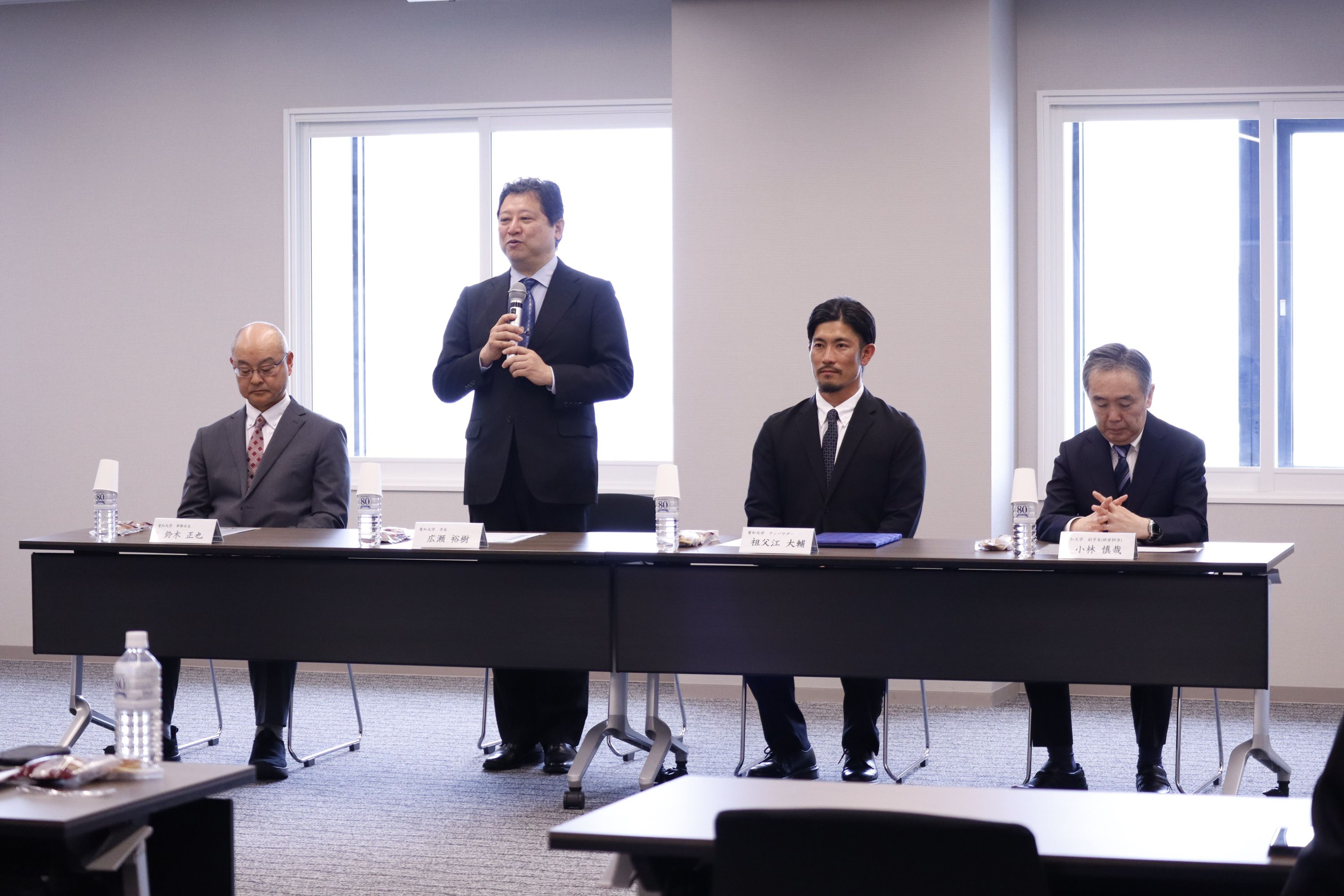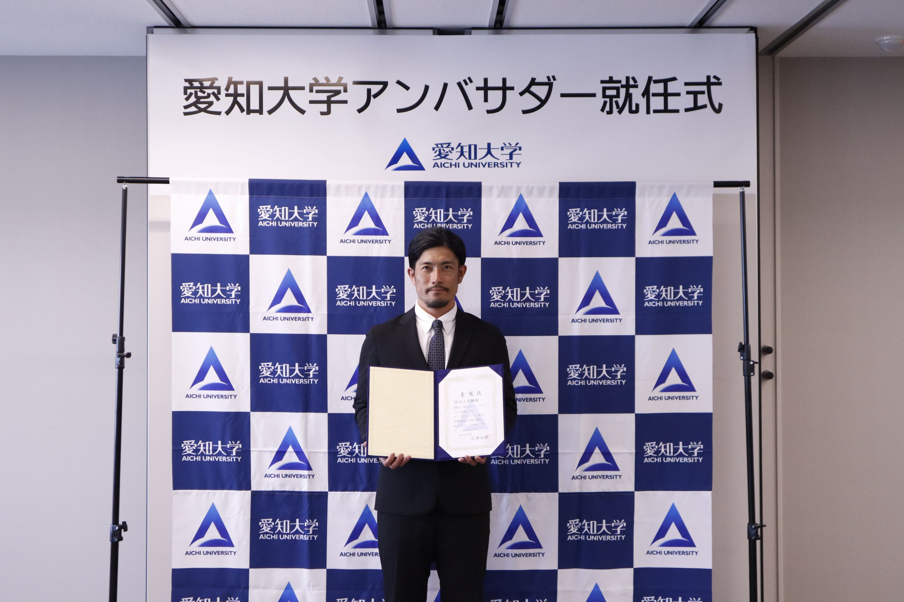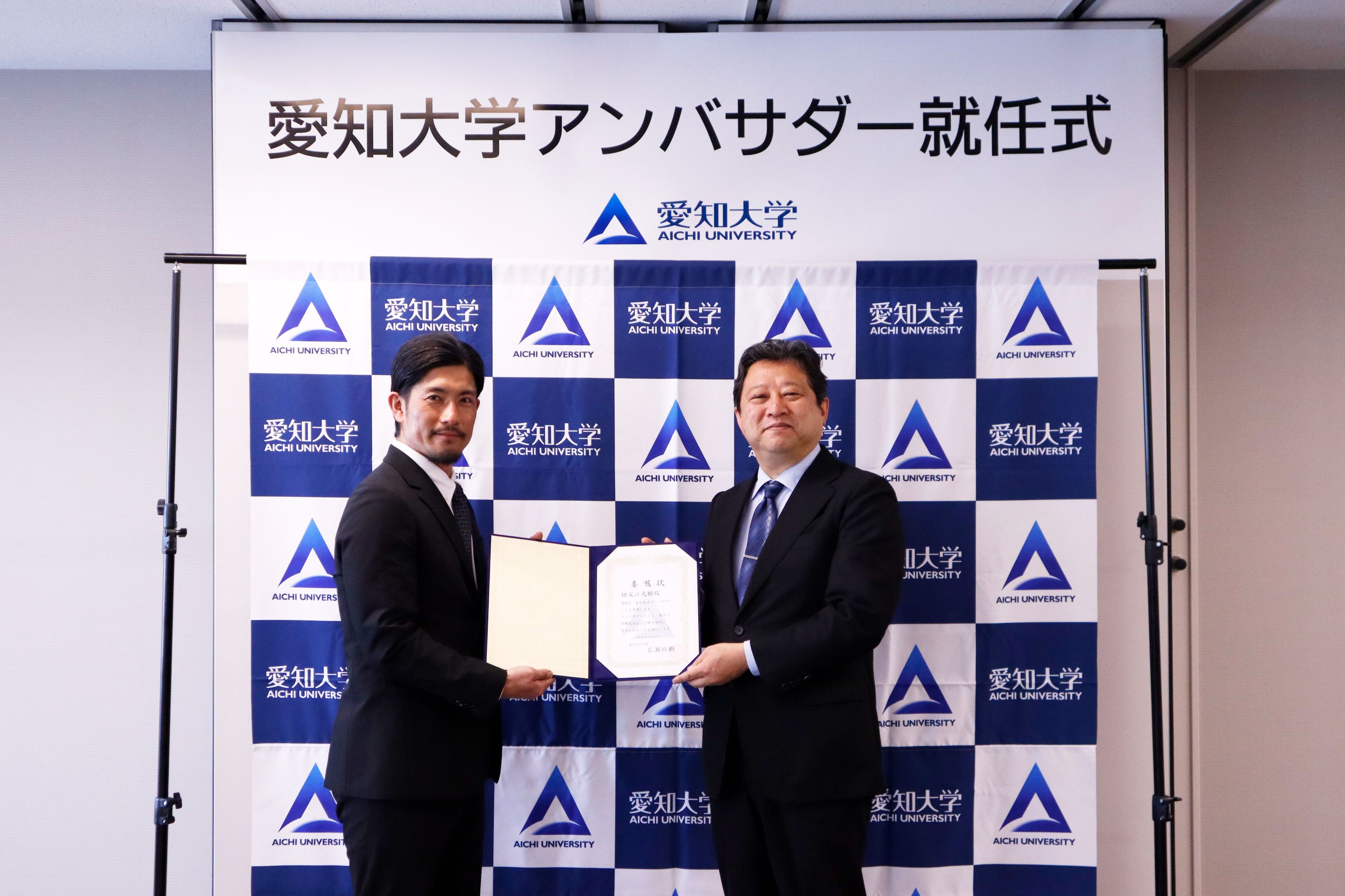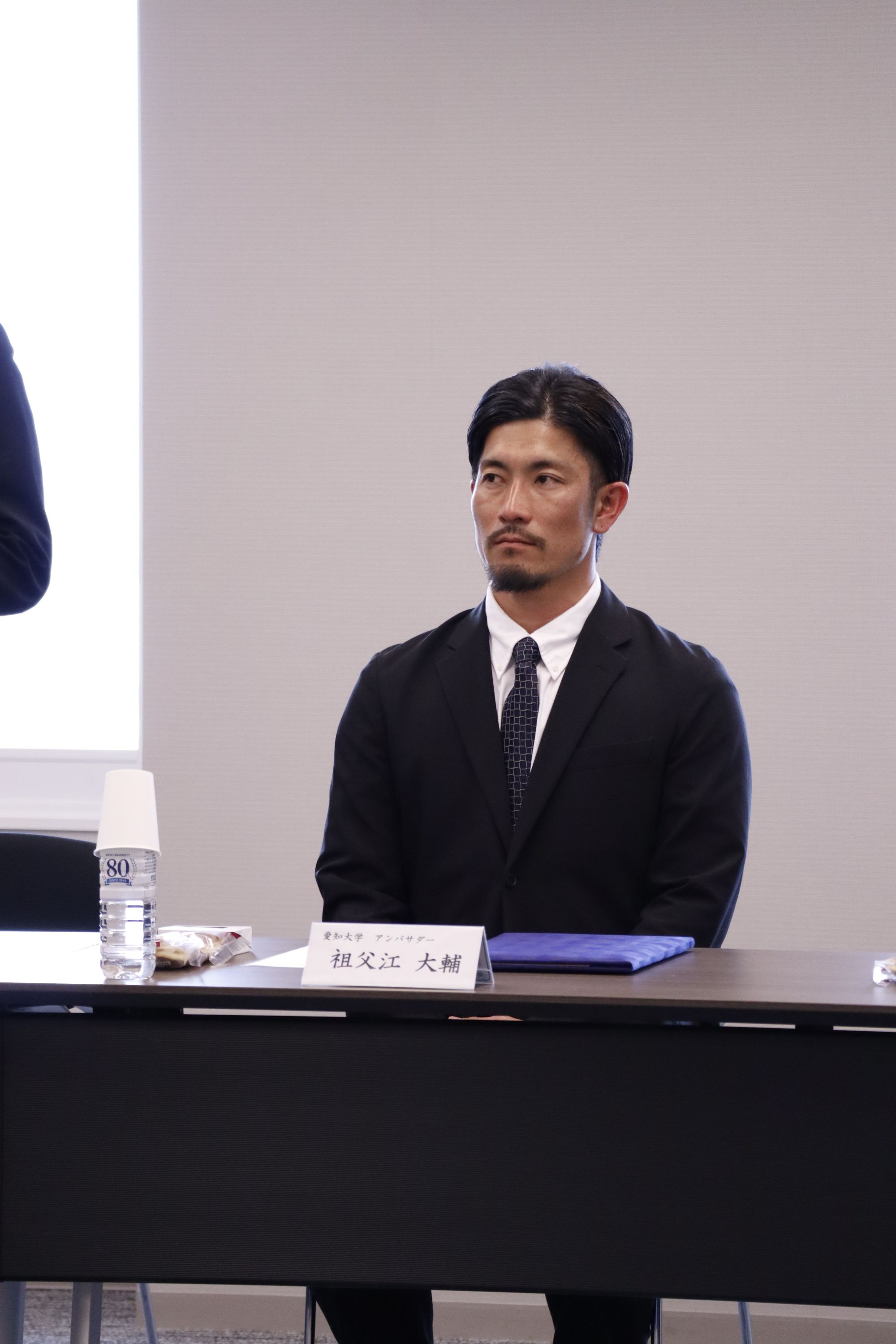 就任式で祖父江氏からは、「野球選手として成長することができた大好きな愛知大学に、アンバサダーとして関われることを大変喜んでいます。野球人生で得た学びや考え方を学生に伝え、挑戦する気持ちを後押ししたい。