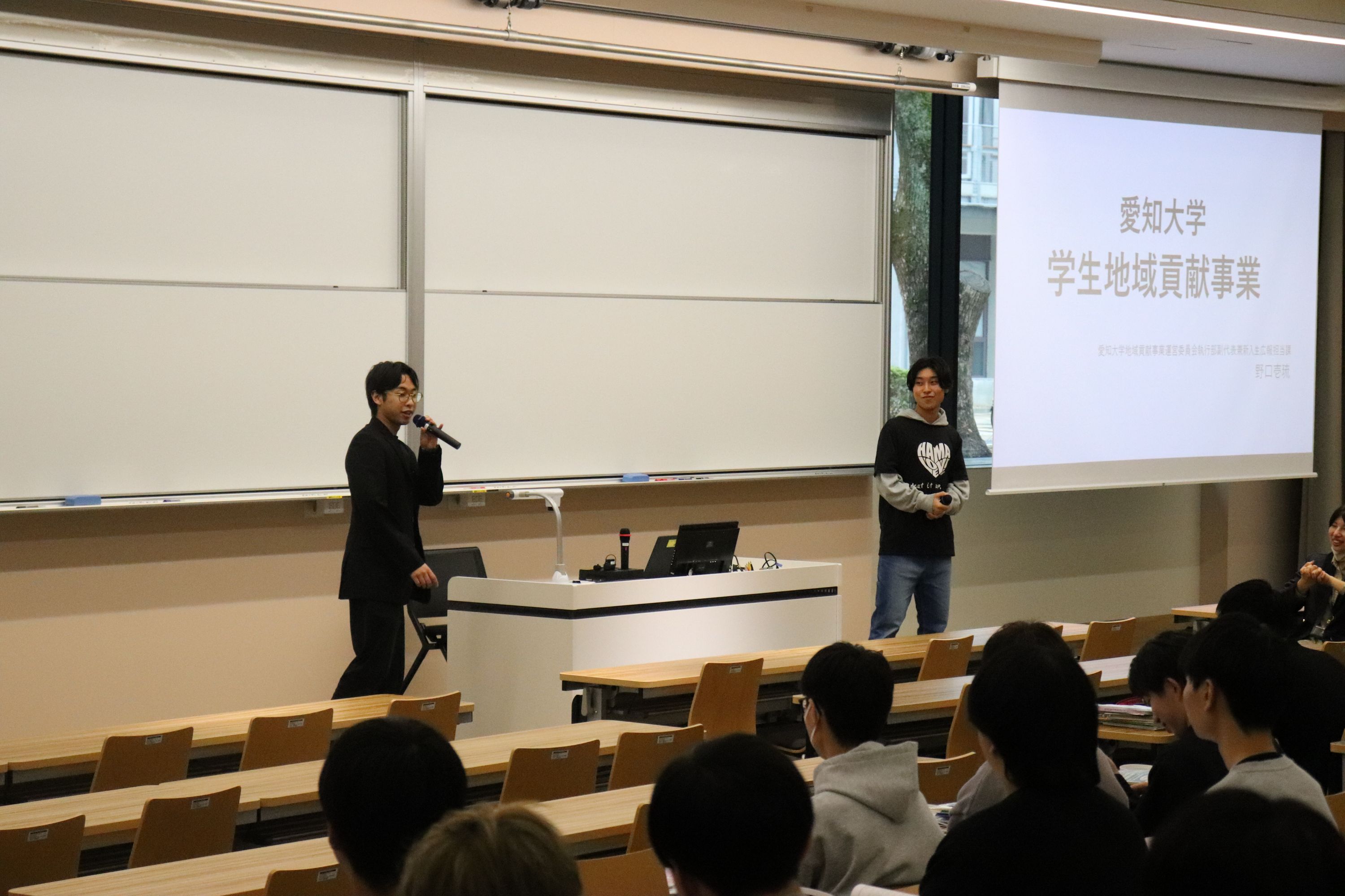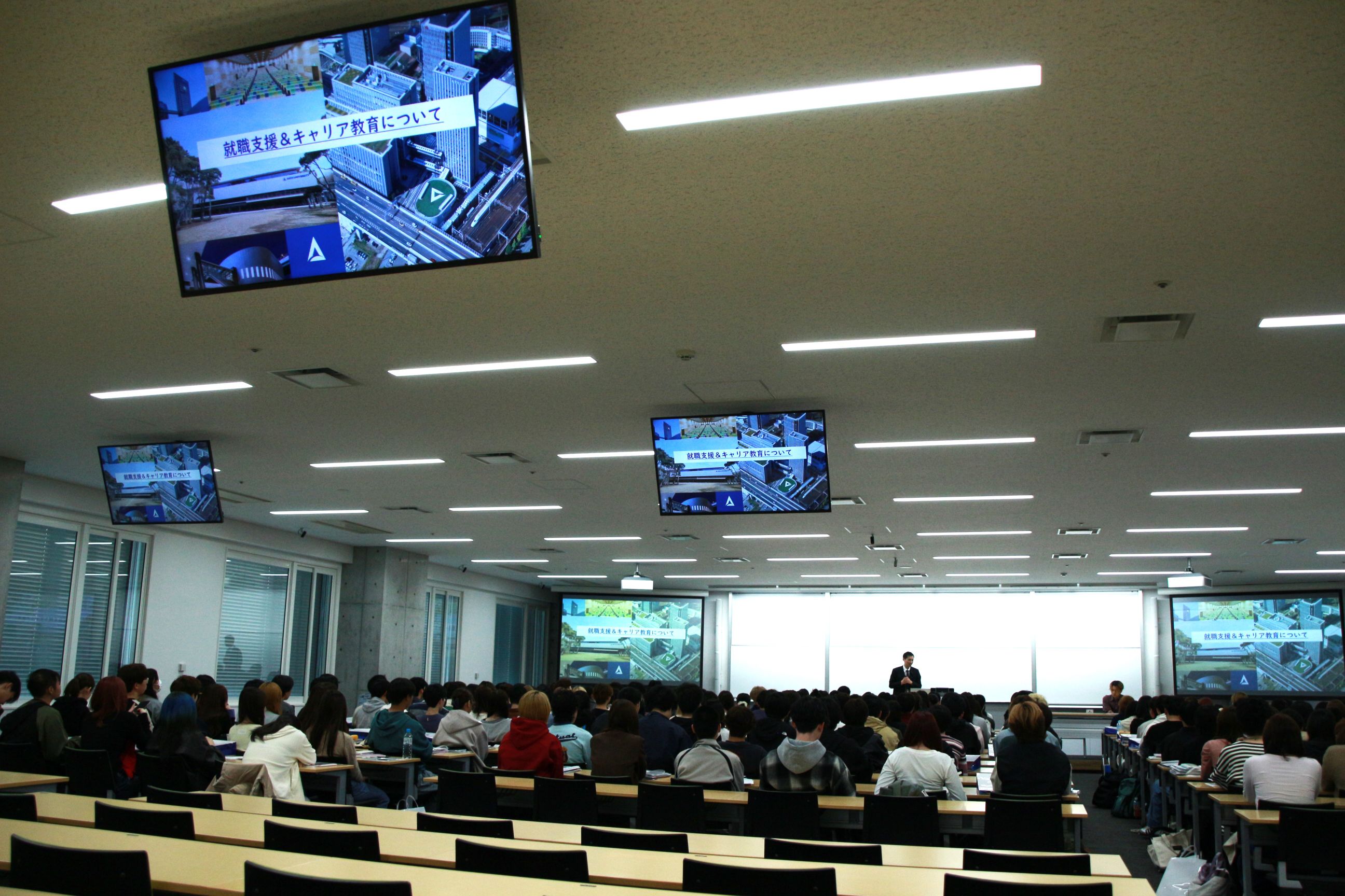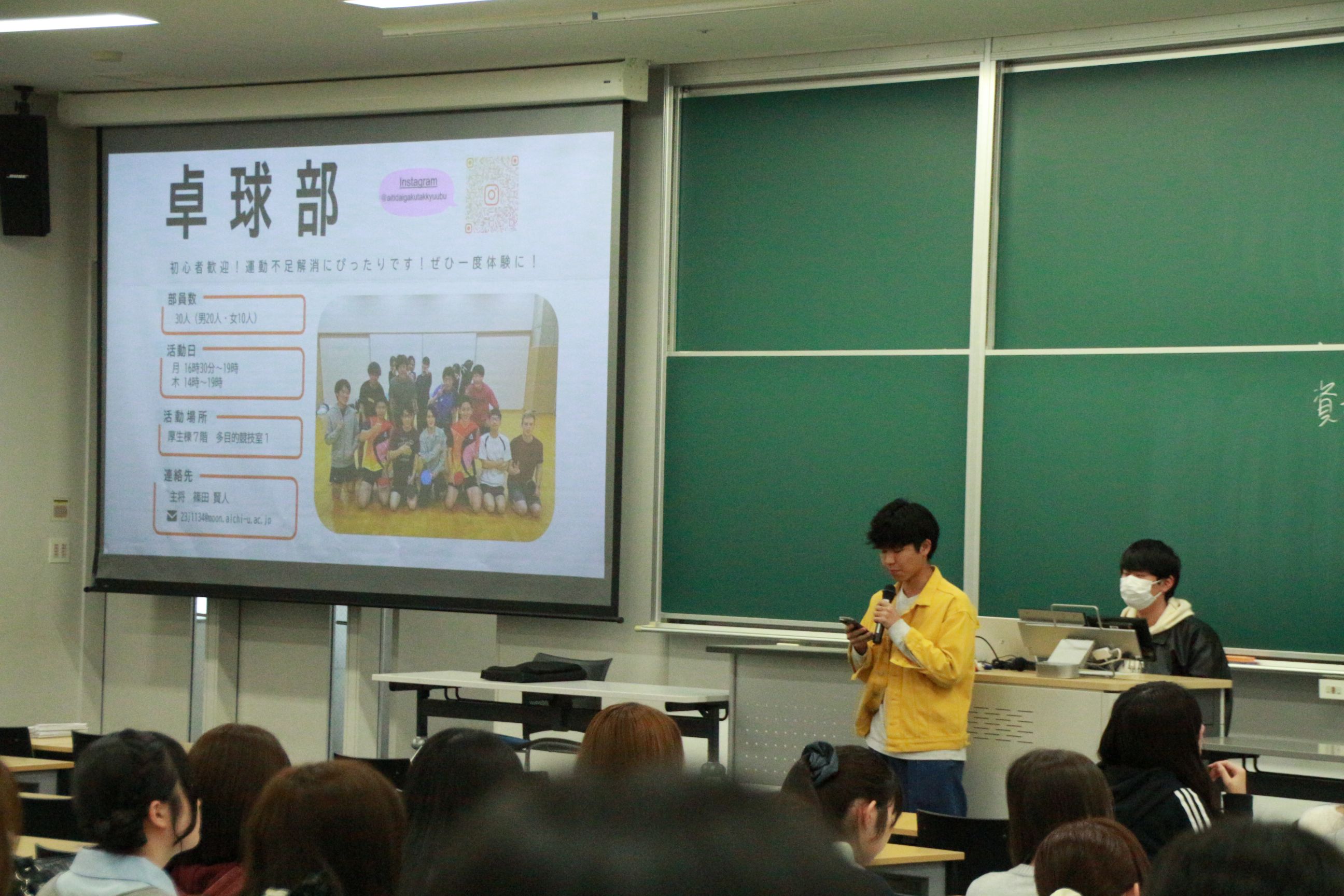 また、クラブ・サークル紹介も教室で行われました。学内は多くの新入生と勧誘に力の入るクラブ・サークルで賑わっています。