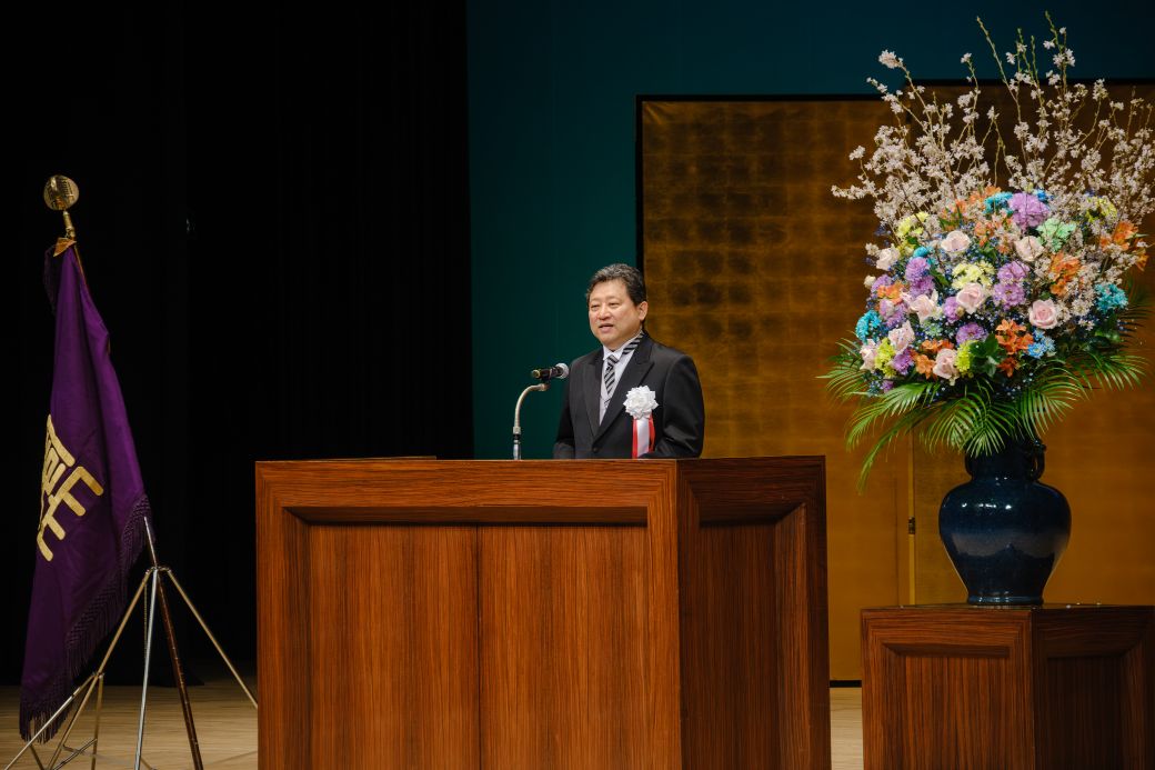 広瀬裕樹学長の告辞では、初めにAIが作った告辞文を紹介。AIは「「形」は真似できても、肝心の「心」が入っていない。」「私は、私の言葉で、皆さんに語りたい。皆さんには、AIに使われる側ではなく、AIを使う側になってもらいたい。」とし、AIが型通りの文章を作れる時代だからこそ、心を込めた言葉と学びの重要性を強調、本学の長い歴史と蓄積された知の中で学び、未来を切り拓いてほしいと激励されました。