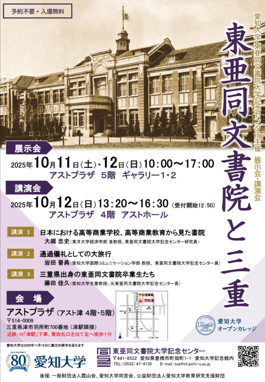 <10/11、12・申込不要>三重展示会・講演会「東亜同文書院と三重」