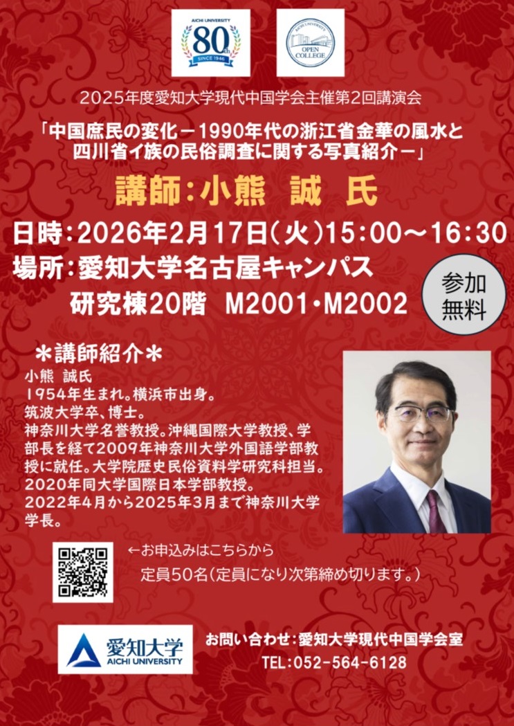 <2/17・要申込>2025年度愛知大学現代中国学会主催講演会「中国庶民の変化-1990年代の浙江省金華の風水と四川省イ族の民俗調査に関する写真紹介-」