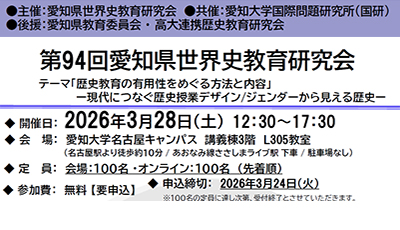 <3/28・要申込>第94回愛知県世界史教育研究会(国際問題研究所・共催)