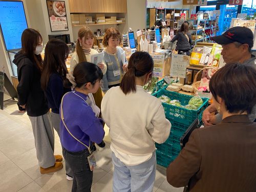 12月18日(木)に、第4回研修が実施されました。今回は、テナントの方々へ直接伺い、各店舗が行っているサステナブルな取り組みについて取材を行いました。具体的には、環境への配慮や社会貢献につながる工夫、また「ここが一番伝えたい」という推しポイントなどを中心にお話を伺いました。取材後は、集めた情報をどのような構成でまとめ、どのように発信していくかについてチーム内で話し合いを行いました。
