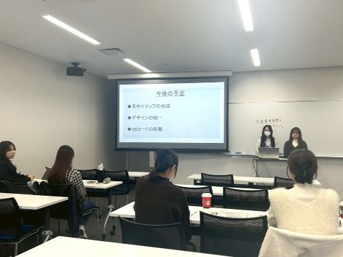 11/27(木)は第2回目の中間報告会で、マップ作成の進捗状況と現段階での課題、最終プレゼンテーションに向けた今後の流れについて発表を行いました。