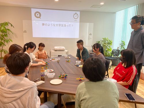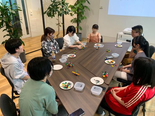 今回の活動では「レゴ®シリアスプレイ®」を行いました。レゴ®シリアスプレイ®とは、レゴを使った対話で、仲間と打ち解けるきっかけとして、企業や大学など、幅広く用いられている手法です。