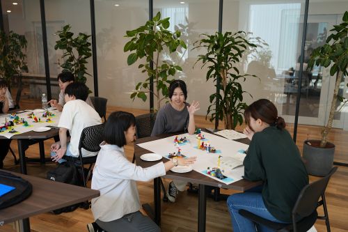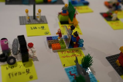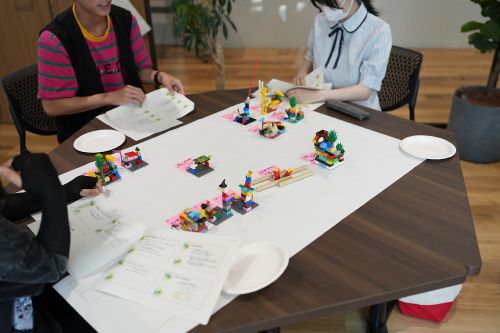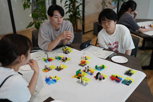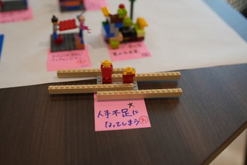 前回は、レゴブロックを使って、グループで出し合った3人の起業家さんたちそれぞれの課題に対して、未来の困りごとや改善点を考えましたが、今回は、それを基に起業家さんごと1つずつ、着目したいものを決めた上で、困りごとや改善点をどんな方法で実現するのかを、前回と同様にレゴブロックで表現しました。そのアイデアは、7月3日に実施される最終発表会で3人の起業家の方たちに向けて、発表します。