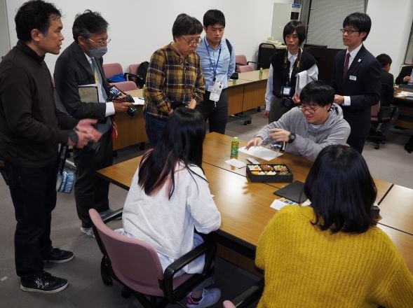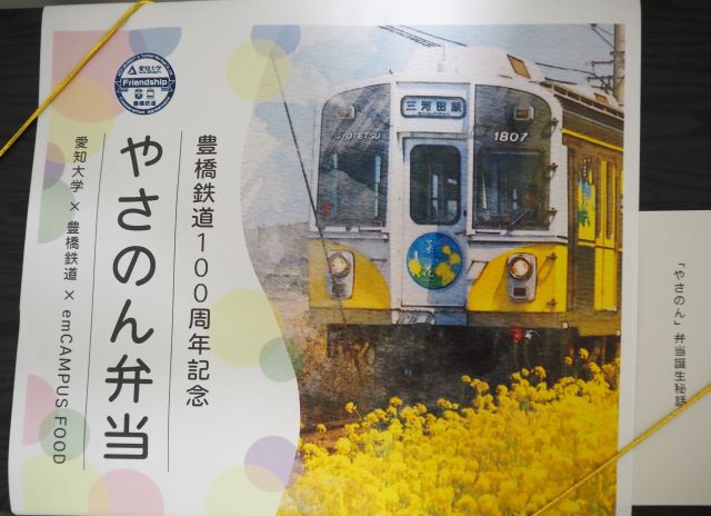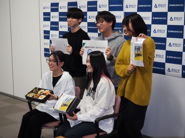 2024年11月13日(水)豊橋校舎にて「豊橋鉄道100周年記念企画プロジェクト」として取り組んできた豊橋鉄道史上初の駅弁「やさのん弁当」の完成披露会を開催し、このプロジェクトに参加した本学学生5名がマスコミ各社の取材を受け、開発に至る経緯や思いを語りました。