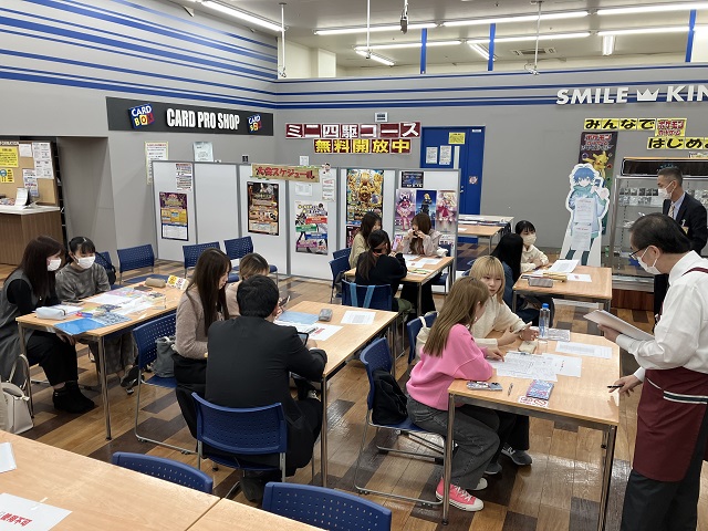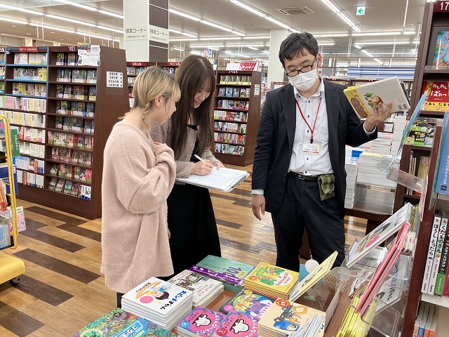 その後わたしたちのグループでは実際に本の王国の店内を回り本の陳列や売れやすい商品の特徴について教えていただきました。