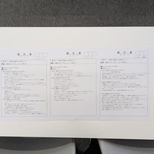 今回の話し合いを通して、本の現状や問題点に気づいたり、本の悪い点だけではなく良い点にも気づいたりすることができました。
