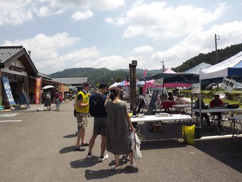 連携・協力協定締結先の売木村との連携事業で、当日の運営スタッフを務めながら、とうもろこし祭りでのブース出展者と顧客との会話を観察し、気づいたことを売木村の職員の方にフィードバックを行う「参与観察調査」を実施しました。学生達が積極的に取り組む姿勢は売木村の方々やスタッフの方々からも好評でした。