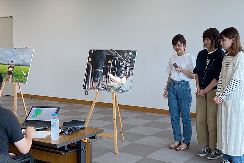 今回参加した17名の学生から、実際に体験して感じた川西町の魅力や感想を学生自ら制作したPRポスターと共に発表しました。