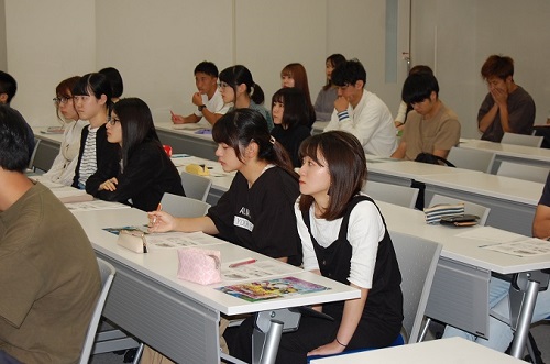 市長の仕事紹介に加え、田原市役所の全組織の紹介と業務内容を一つ一つ丁寧に説明いただきました。公務員への就職を希望している学生に対しては、誰のために仕事をするかを常に考え、自負できるような大きなを実績を一つは残してほしいとメッセージをいただきました。学生からの質疑では、人口減への施策や豚コレラ対策などの質問が出されました。