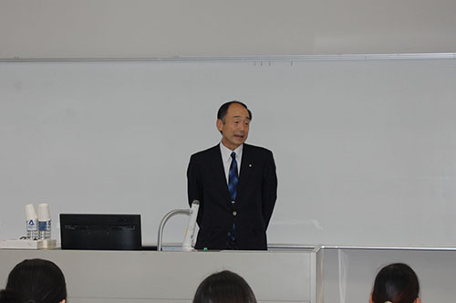 本学学長を務め、創設に多大なる尽力をされた本間喜一先生の故郷である川西町では、本間先生が町の偉人として認知されていることが紹介されたほか、学生へのメッセージとして、まちづくりには「DNA」が大事であり、町長の考えるD(できることから)、N(仲間を大切に)A(遊び心を持って)以外に、自分たちなりの「DNA」を考えてほしいとの言葉をいただきました。