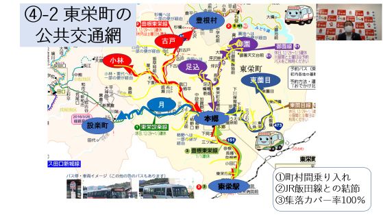 町の特色、空き家を活用した移住者の受け入れや起業についてご紹介いただいたほか、将来にわたって暮らし続けられるまちづくりに必要な7つの柱について福祉の充実や独自の教育、防災力の向上などのご説明をいただきました。