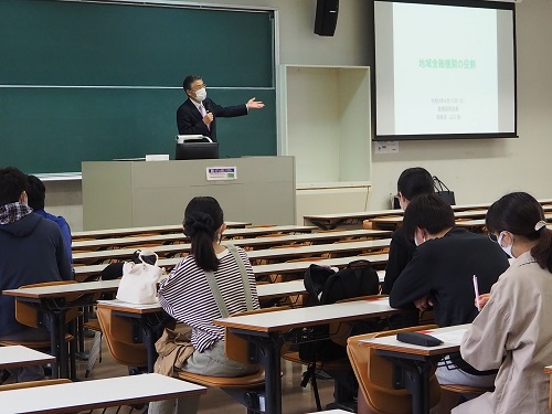 4月13日(火)の地域政策学部の講義に豊橋信用金庫の山口理事長が登壇されました。