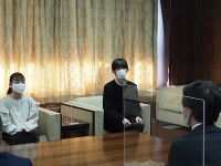 3月8日(火)には代表者3名が知立市役所にて知立市長・副市長へマップ完成の報告に伺い、マップの内容や魅力、制作時に苦労したところなどを説明させていただきました。