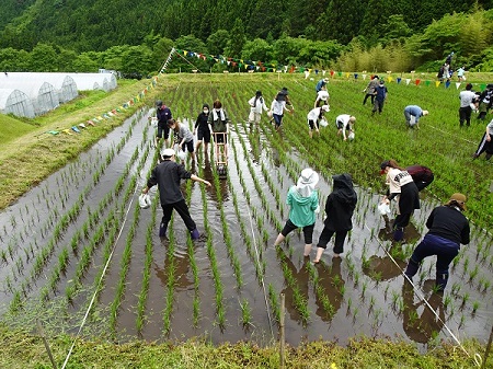 午前中は、5月に田植えを行った田んぼで草取りに取り組みました。