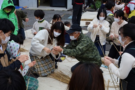 学生は自分たちで収穫した炊き立てのお米と現地で捕れた猪汁を味わい、豊根村ならではの格別な
