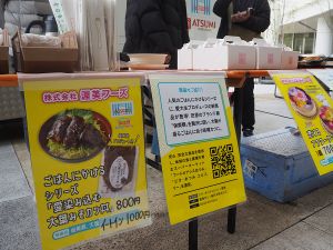豊橋市駅前の複合施設「emCAMPUS」で開催された"新商品おひろめマルシェ"で、各社の試作品に並んで『愛染み込む大葉みそカツ丼』も販売させていただきました。販売会には3名の学生が参加して商品の販売など行い、地元ケーブルテレビの取材も受けました。