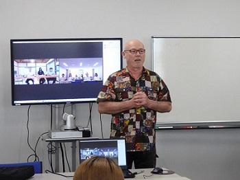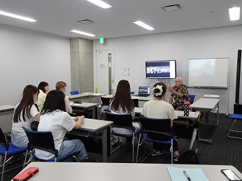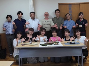 事前研修では、今回のプログラムに協力いただくことになったフランス人パティシエの方に大学まで来ていただき、売木村とオンラインで結び学生に売木村のことを知ってもらったうえで、