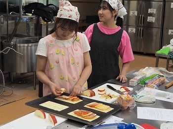 二日目は、事前に試行錯誤を重ねて考案したレシピをもとに、各グループが売木村の特産品である「たかきび」と食材を使用した焼き菓子を各チーム1つずつ完成させました。